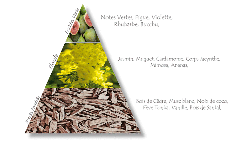 « Figuier mimosa » est une fragrance fraîche et florale, verte avec du buchu, de la figue, de la violette.Des notes florales, épicées avec de la cardamome, du jasmin, du mimosa. Enfin des notes boisées et poudrées avec du bois de cèdre, du musc, de la noix de coco, de la fève tonka, de la vanille, du bois de santal.